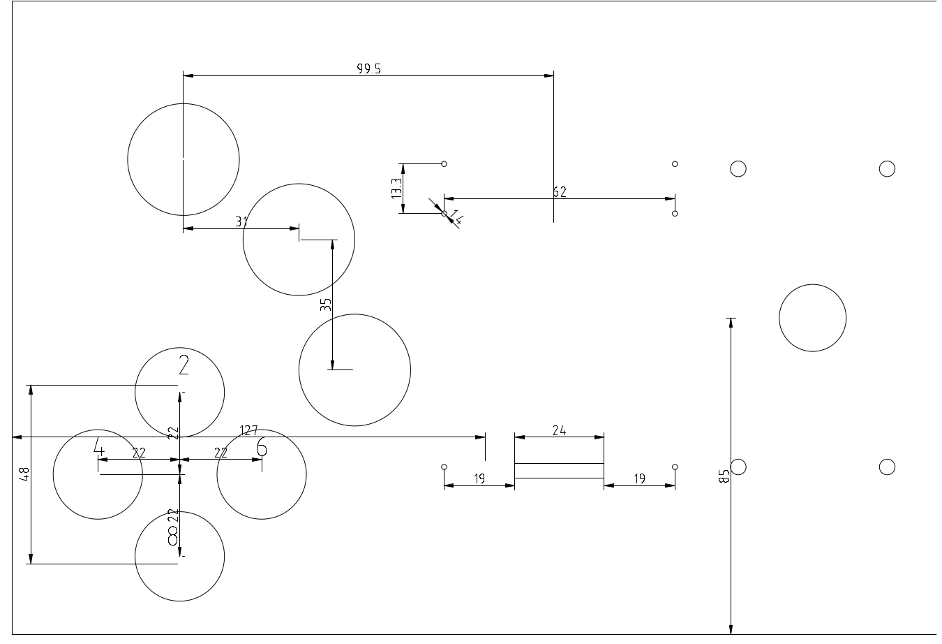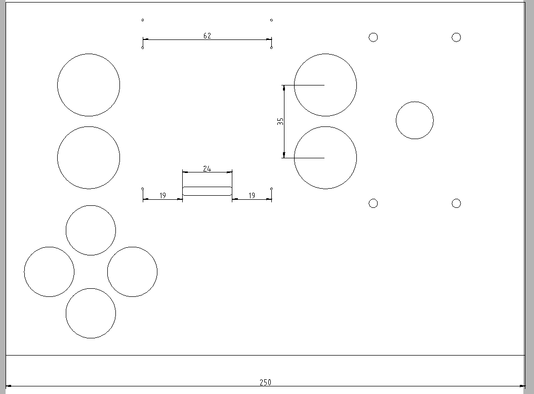 3 independent buttons, arcade style, 30mm, joystick on the right.